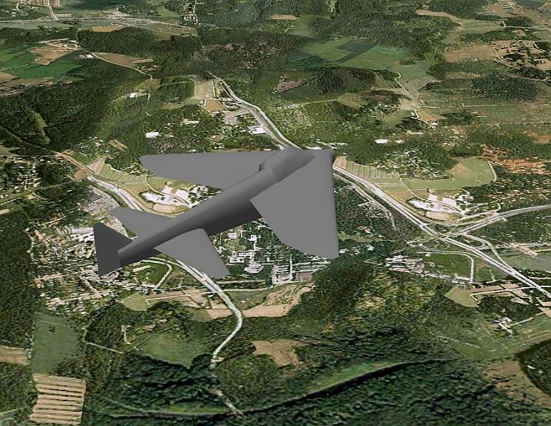Unten diese Drohne 240 kg/11,6 m°2 mit einem leichten Jetantrieb in einer x-plane Simulation: